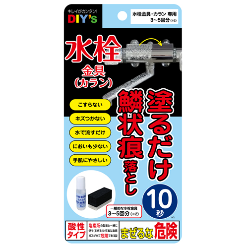 ・水栓金具にこびりついた、鱗状痕(うろこ汚れ)を塗るだけで溶かして落とします。
