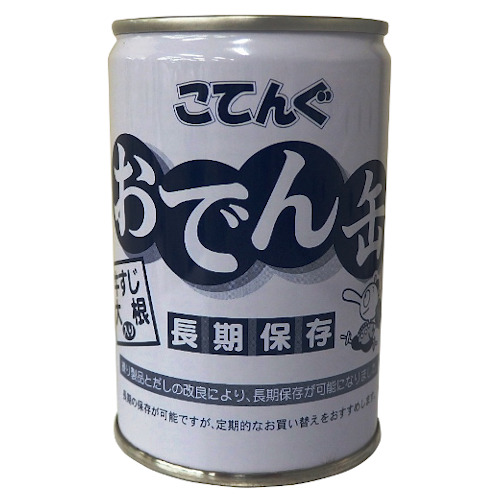 ・7種の具材(牛すじ、さつまあげ、ちくわ、大根、こんにゃく、結びこんにゃく、うずら卵)が入ったボリュームたっぷりのおでん缶です。