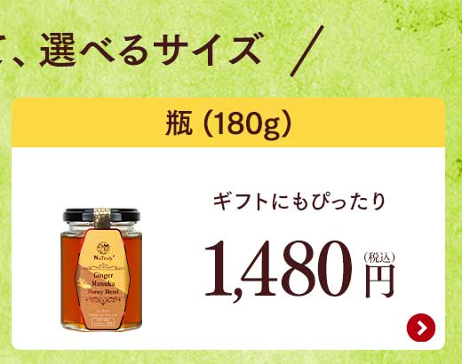 | 原材料名 | マヌカ蜂蜜(ニュージーランド産) 百花蜂蜜 生姜濃縮汁 |