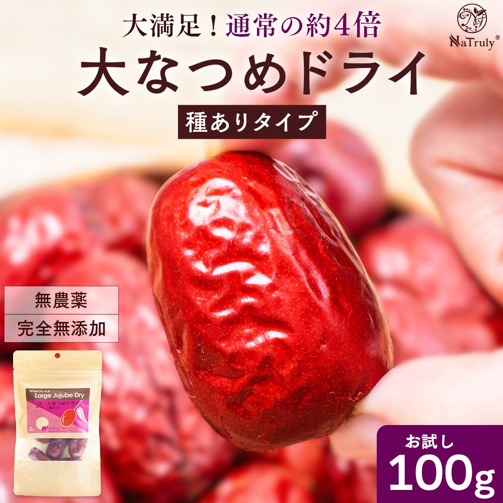 | 使用方法 | ※実の中に両端が鋭く尖った種が入っていますので、必ず先に取り出してからお召し上がりください。 ※お召し上がりの際、実の中の種をお子様やご年配の方が誤って飲み込まないようにくれぐれもご注意ください。 洗わずそのままお召し上がりいただけます。 ●1日あたりの目安:食品ですので、特に決まりはありません。ご参考までに、中国には「一日食三棗 終生不顕老(1日に3個のナツメを食べれば一生老いない)」という言い伝えがあります。大なつめドライ3個(約40g)。 ※一度に食べ過ぎると、ご体質により、胃腸に刺激を与える場合がありますのでご注意ください。 ※天然由来のため、 収穫年や商品ごとに色、味、香りにバラつき が生じることがありますが、品質には問題ありません。 |