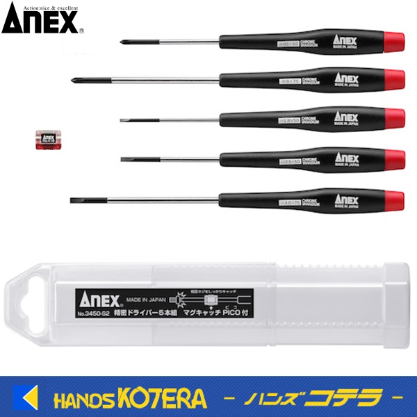 ANEX アネックス 精密ドライバー5本組 マグキャッチ付 3450-S2