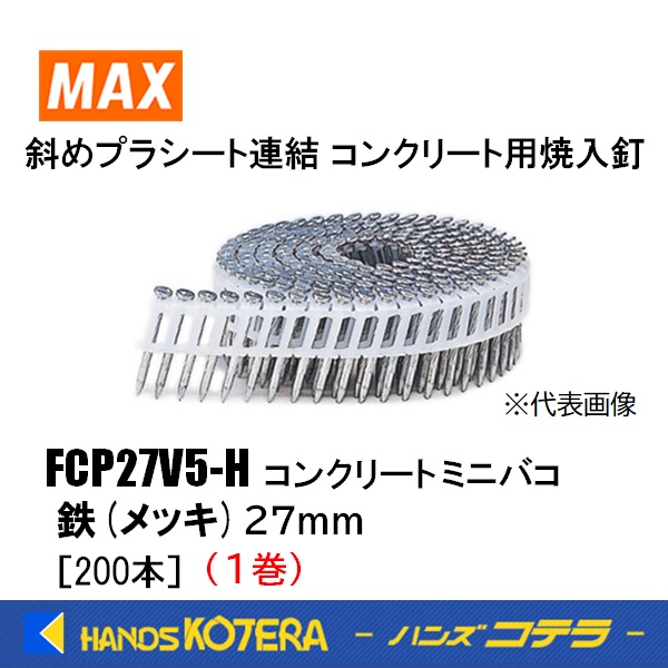 店舗在庫品 MAX マックス プラシート連結釘 FCP27V5-H 1巻 27ミリ/鉄(メッキ)/焼入スムース釘 1巻200本[FP96505]コンクリート ミニバコ