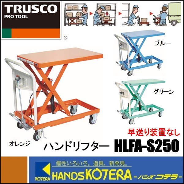 代引き不可 TRUSCO トラスコ ハンドリフター 早送り装置なし HLFA-S250 250kg 500X800mm オレンジ/ブルー/グリーン *車上渡し品