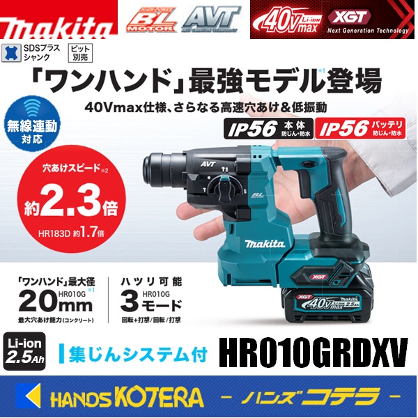 makita マキタ 40Vmax 20mm充電式ハンマドリル[SDSplus] HR010GRDXV ※バッテリ2本・充電器・ケース・集じんシステム付 ビット別売