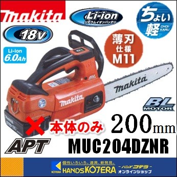 makita マキタ 18V 充電式チェンソー ガイドバー200mm MUC204DZNR[赤]※本体のみ(薄刃専用スプロケットノーズバー仕様)[6.0Ah]