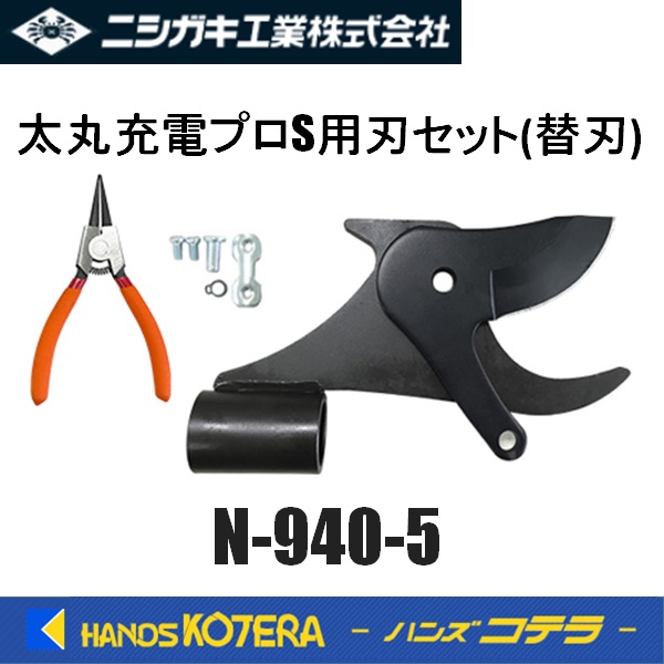 ニシガキ 充電式太枝切鋏 太丸充電プロS用刃セット(替刃)スナップリングプライヤー付 N-940-5