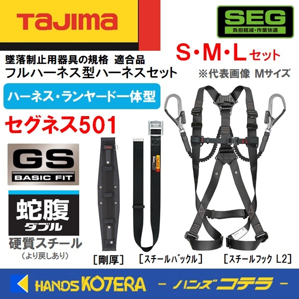 M在庫あり Tajima タジマ セグネス501 (一体型セット) [ハーネスGS+蛇腹ダブルL2+胴ベルト+胴当てベルト剛厚]S/M/L スチール仕様 おまけ付