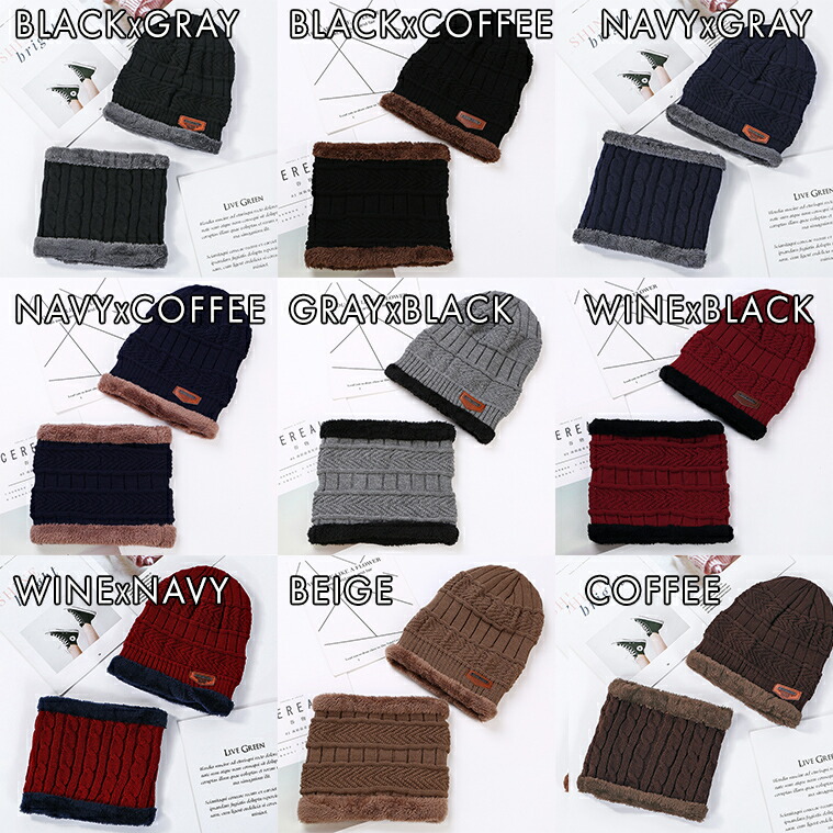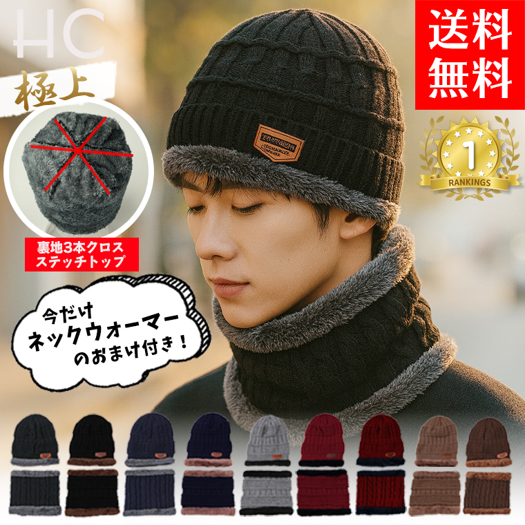 商品名:ニット帽 ネックウォーマー 2点セット メンズ 10代 20代 30代 40代 50代 60代 70代 冬 野球 ゴルフ サッカー 自転車 防寒