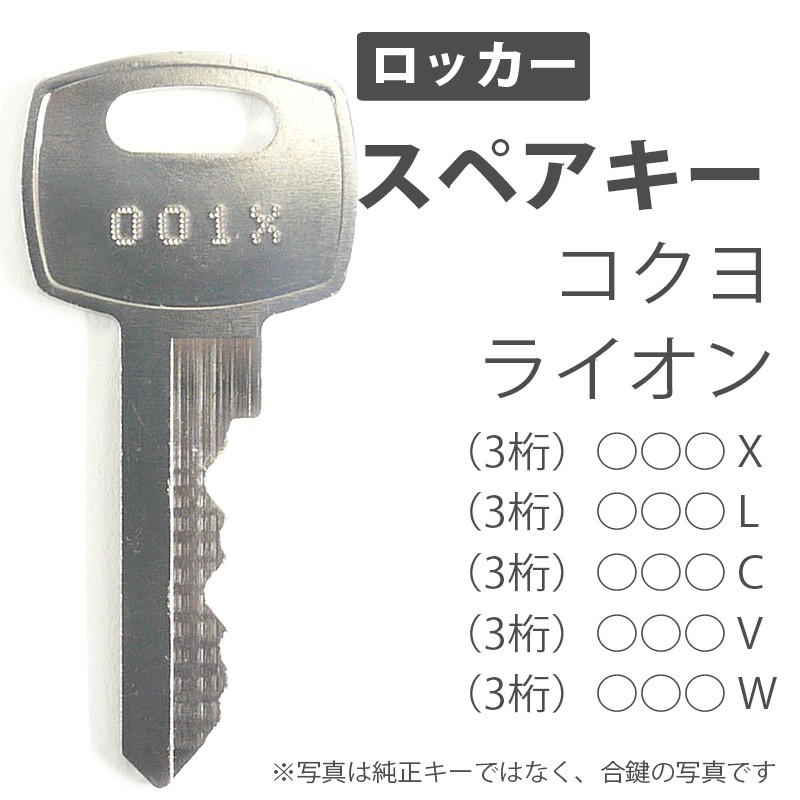 更衣用・多人数用・シューズ用ロッカー用の合鍵 スペアキーです。メーカー純正キーではありません。鍵屋さんで作る合鍵と同じ物ですが、当店では鍵を紛失した際など、鍵が無くても作成可能です。鍵番号は鍵穴に記載されていますので番号は確認できます。当店では全ての合鍵に鍵番号を無料で刻印するサービスをしております。