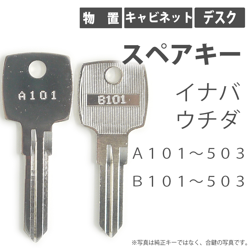 キャビネット、デスク、物置用の合鍵 スペアキーです。メーカー純正キーではありません。鍵屋さんで作る合鍵と同じ物ですが、当店では鍵を紛失した際など、鍵が無くても作成可能です。鍵番号は鍵穴に記載されていますので番号は確認できます。