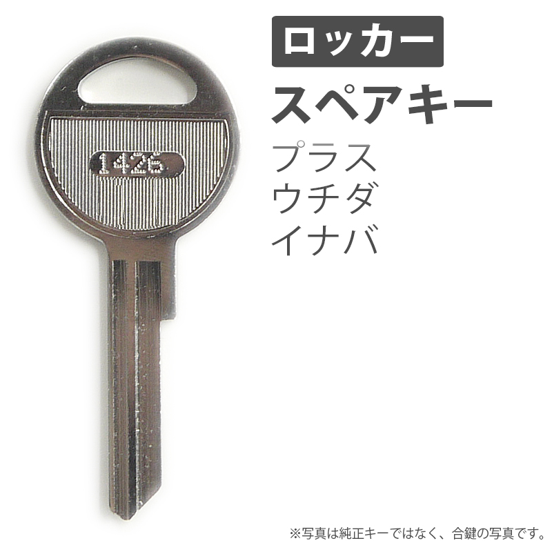 更衣用ロッカー、多人数ロッカー用の合鍵 スペアキーです。メーカー純正キーではありません。鍵屋さんで作る合鍵と同じ物ですが、当店では鍵を紛失した際など、鍵が無くても作成可能です。鍵番号は鍵穴に記載されていますので番号は確認できます。