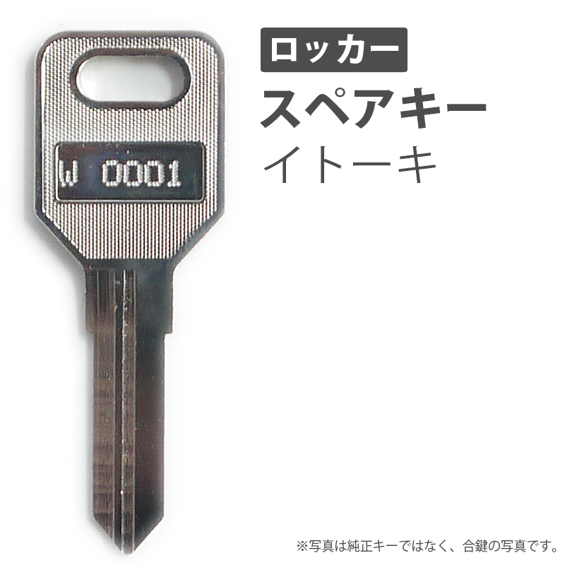 ロッカー用の合鍵 スペアキーです。メーカー純正キーではありません。鍵屋さんで作る合鍵と同じ物ですが、当店では鍵を紛失した際など、鍵が無くても作成可能です。鍵番号は鍵穴に記載されていますので番号は確認できます。当店では全ての合鍵に鍵番号を無料で刻印するサービスをしております。