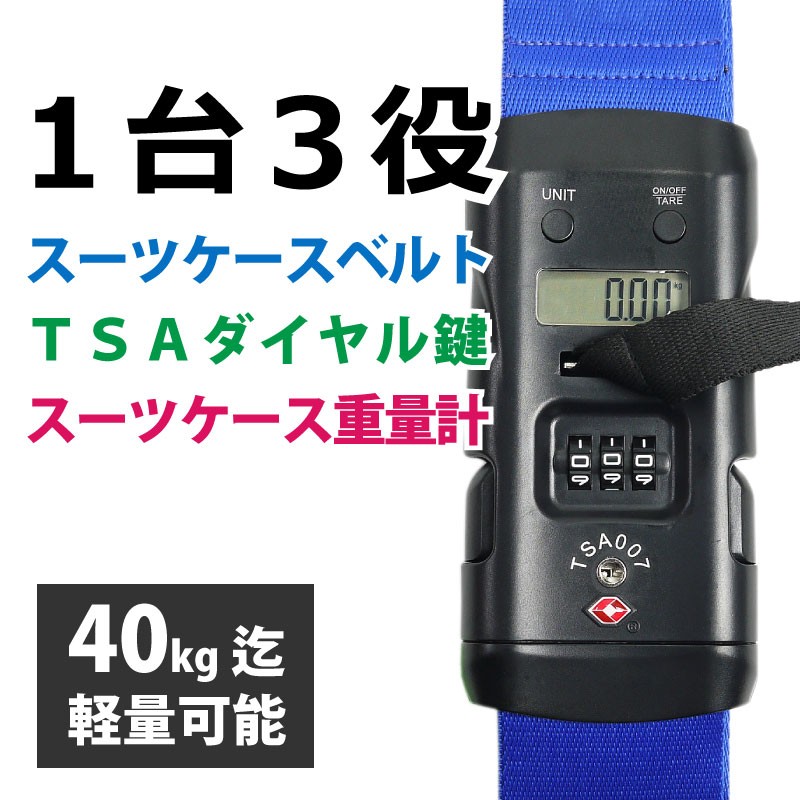 スーツケースベルト TSAロック 3桁ダイヤル重量計付 青/ブル