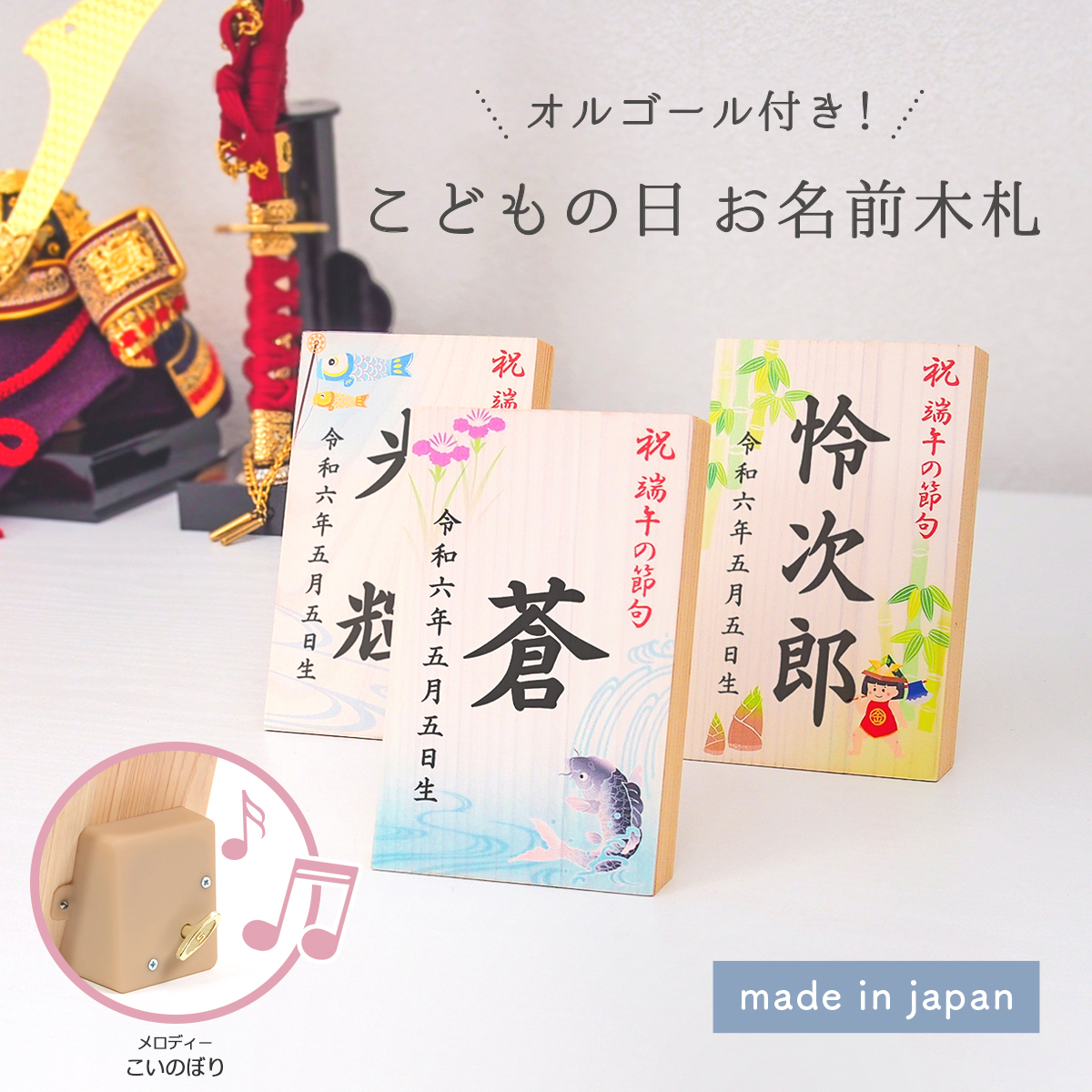 節句 名前札 五月人形 端午の節句 こどもの日 名前 男の子「タテ型オルゴール付きお名前木札」国産ヒノキのお名前木札 可愛いデザインから選べるお名入れ木札