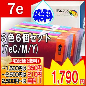 BCI-7e (染料) 3色6個セット( BCI-7eC BCI-7eM BCI-7eY)×2CANON 互換インクカートリッジ【宅急便(沖縄・離島を除く) 】