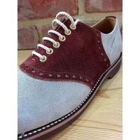 通常のリーガルのサドルシューズを基にレザーをグレードアップさせ、飾り穴を施したモデルになります。 グッドイヤーウエルト式でソール部分に革を使用しています。ソールの裏はゴムになります。ボックス、スペアレース付き。