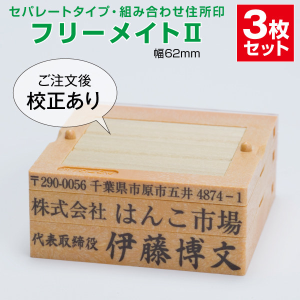 ゴム印 はんこ ハンコ 社判 親子判 オーダー セパレート 62mm 3行 住所印 組み合わせ フリーメイト2 インボイス 印鑑