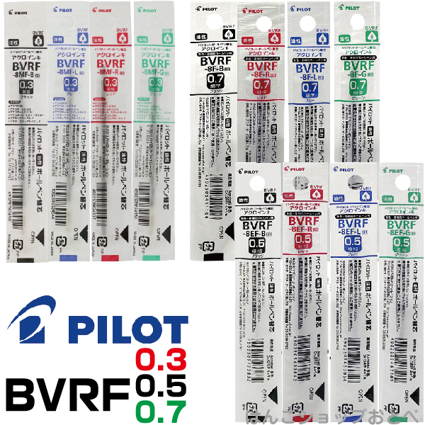 | 特徴 | パイロット替え芯、BVRFシリーズです。 1本販売です。ご希望の太さ、インキ色をお求めください。 ※BVRFシリーズのペンであれば、どの太さの芯でも交換することが可能です。 (例)0.7mmのペンに0.3mm・0.5mmの芯が使えます。 |