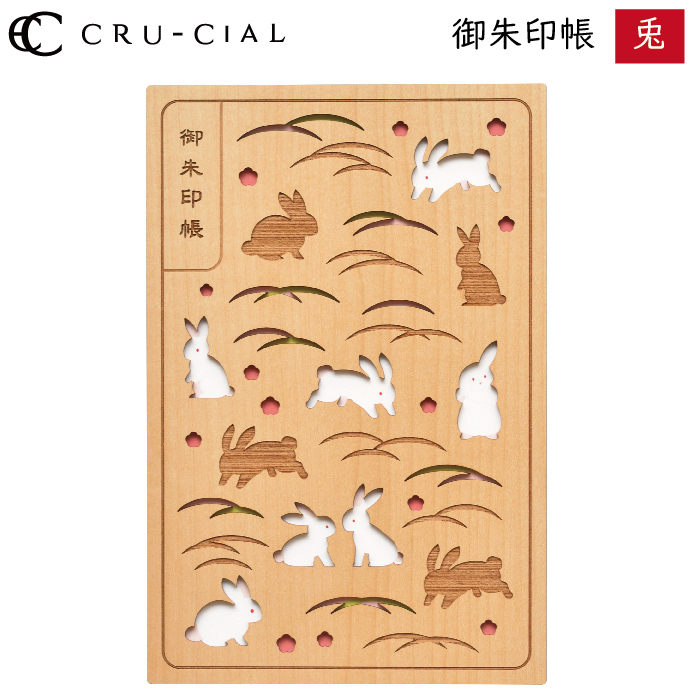 御朱印帳 兎 うさぎ 木製 H210074RA クルーシャル B6変型判 120×180mm 36ページ 高級 スタンプ帳