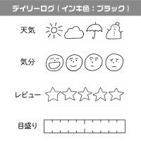 | 仕様 | インキが薄くなったら、別売りの「アレモアスタンパー(ノトトジョイン)専用補充インキ」で補充可能です。 ●パッケージサイズ:83×133.5mm ●印面サイズ/5×19mm ●種類/天気・気分・レビュー・目盛り ●インキ色/ブラック |
