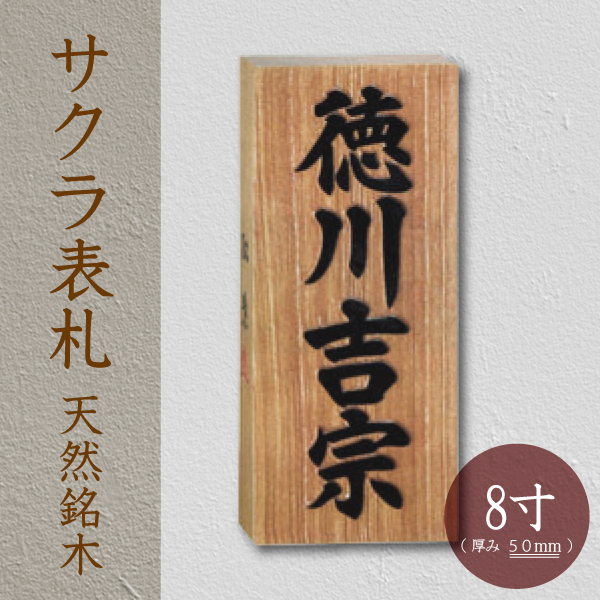 サクラ表札 天然銘木 8寸(厚み50mm)/横100×縦240×厚み50/筆書き/沈彫り/浮彫り
