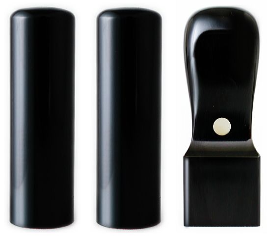 黒水牛芯持は、耐久性・硬度・粘りにも優れ、篆刻には大変に適した材質です。芯に最も近い部分で、この芯もち部分を使用した黒水牛印鑑は最高級と言われています。