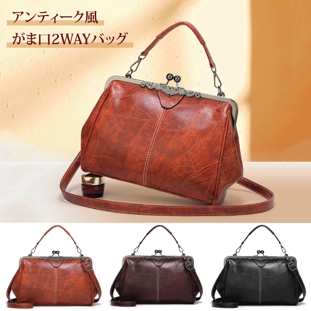 アンティーク風がま口2WAYバッグ (がま口バッグ) | ハンドバッグ ショルダーバッグ トートバッグ レディースバッグ