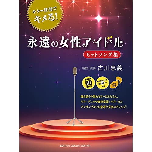著者 説明 コードをかき鳴らすだけ、単調なアルペジョだけの「弾き語り曲集」とは一線を画し、ギター伴奏にこだわり抜いたヒットソング集の第 2 弾『ギター伴奏でキメる! 永遠の女性アイドル ヒットソング集』がついに刊行! 昭和を彩った女性アイドルたちの名曲 18 曲を収載しました。模範演奏 CD はギター伴奏のみとメロディー入りの 2 枚組、BGM としてもおススメです。もちろん全曲タブ譜付き。編曲・演奏は『永遠のヒットソング集』『ベンチャーズ名曲集』で人気の名手・古川忠義。