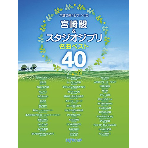 宮崎駿&スタジオジブリ名曲ベスト401 . となりのトトロ/2 . さんぽ/3 . おかあさん/4 . 風のとおり道/5 . ねこバス/6 . まいご/7 . 遠い日々/8 . 鳥の人 ~ナウシカのテーマ~/9 . 風の谷のナウシカ ~シンボルテーマソング~/10 . ハトと少年/11 . 君をのせて/12 . めぐる季節/13 . 想い出がかけぬけてゆく/14 . あこがれのまち/15 . ルージュの伝言/16 . やさしさに包まれたなら/17 . 鳥になった私/18 . 愛は花、君はその種子/19 . カントリーロード/20 . 時には昔の話を/21 . さくらんぼの実る頃/22 . アシタカとサン/23 . もののけ姫/24 . いつも何度でも/25 . あの日の川/26 . ふたたび/27 . 風になる/28 . 人生のメリーゴーランド/29 . 世界の約束/30 . 時の歌/31 . テルーの唄/32 . 崖の上のポニョ/33 . 海のおかあさん/34 . さよならの夏/35 . 朝ごはんの歌/36 . ARRIETTY'S SONG/37 . FINE ON