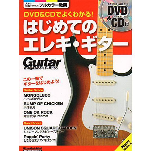 DVD&CDでよくわかる!はじめてのエレキ・ギター New Edition(DVD&CD付)1 . ■Part.1 プレイをはじめる前に/2 . ■Part.2 ギター・プレイをはじめよう!/3 . ■Part.3 エレキ・ギター・テクニックに挑戦!/4 . ■Part.4 総合実践フレーズ集/5 . ■Part.5 ギター・ノウハウいろいろ/6 . ■ギター・スコア/7 . ◎MONGOL800「小さな恋のうた」/8 . ◎BUMP OF CHICKEN「天体観測」/9 . ◎ONE OK ROCK「完全感覚Dreamer」/10 . ■バンド・スコア/11 . ◎UNISON SQUARE GARDEN「シュガーソングとビターステップ」/12 . ◎Poppin'Party「ときめきエクスペリエンス! 」/