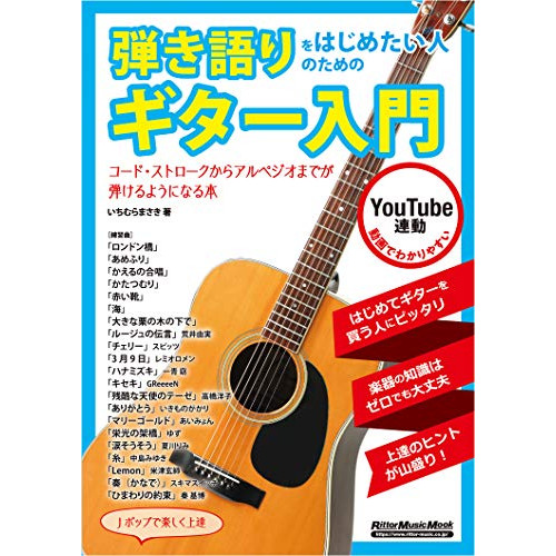 弾き語りをはじめたい人のためのギター入門1 . INTRODUCTION ギターを買う前に知っておいてほしいこと/2 . I-1 これがギターです/3 . I-2 いろいろな「アコギ」/4 . I-3 楽器店に行く前に知っておいてほしいこと/5 . I-4 いくらくらいのギターを選ぶ?/6 . I-5 どんなギターを選べばいい?/7 . I-6 ギターと一緒に何を買う?/8 . column 弾き語りの「歌」の話1/9 . PART 1 ギターを買ってきました/10 . 1-1 ギターの持ち方/11 . 1-2 ピックの持ち方/12 . 1-3 右手の振り方/13 . 1-4 音を鳴らしてみよう/14 . 1-5 音を止めるのも大切/15 . 1-6 チューニングの基礎知識/16 . 1-7 チューニングしてみよう/17 . 1-8 保管の方法/18 . 1-9 弦交換の基礎知識/19 . 1-10 弦交換の方法/20 . PART 2 ギターを鳴らして歌ってみよう/21 . 2-1 音を出す前に準備体操/22 . 2-2 コード・ダイアグラムについて/23 . 2