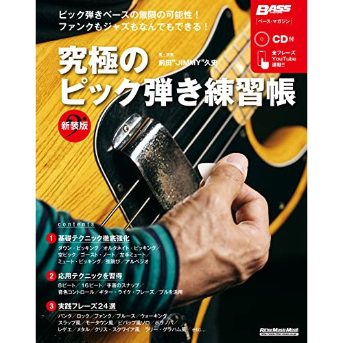 究極のピック弾き練習帳 [新装版](CD付)1 . ■1.基礎テクニック徹底強化/2 . 1-1 すべての基本! ダウン・ピッキング/3 . 1-2 ピック弾きの必修テクニック! オルタネイト・ピッキング/4 . 1-3 リズムをビシッと決めろ! 空ピック/5 . 1-4 スピード感倍増! ゴースト・ノート/6 . 1-5 ピック奏法の盲点!? 左手のミュート/7 . 1-6 左手のテクニックとのコンビネーション/8 . 1-7 音色を積極的に変えるミュート・ピッキング/9 . 1-8 難易度高し! 弦跳びピッキング/10 . 1-9 基礎テクニックの最難関! アルペジオ/11 . ■2.応用テクニックを習得/12 . 2-1 オルタネイト・ピッキングを8ビートに乗せる/13 . 2-2 オルタネイト・ピッキングを16ビートに乗せる/14 . 2-3 スナップを利かせたアタックの強いピッキング/15 . 2-4 ピッキングの位置による音色のコントロール/16 . 2-5 ギタ