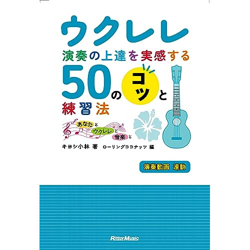 ウクレレ演奏の上達を実感する50のコツと練習法(音楽書)1 . 第1 章 ウクレレ選び・弦交換・チューニングのコツ/2 . 第2 章 意識・モチベーションの向上は上達のカギ/3 . 第3 章 準備運動・日々のトレーニングをルーティンに/4 . 第4 章 演奏がずっと楽になる弦の押さえ方/5 . 第5 章 魅力ある音色を出すためのコードの知識/6 . 第6 章 リズムにこだわって演奏にもっとメリハリを/7 . 第7 章 ググッと演奏を引き立てるテクニックのいろいろ/8 . 第8 章 自分でアレンジして自由な演奏を楽しもう/