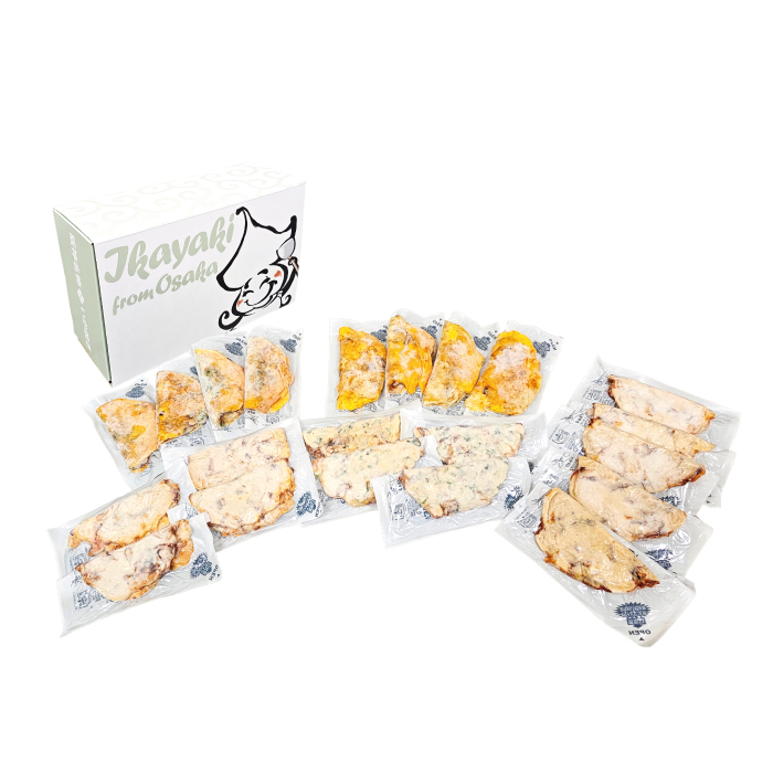 | 内容量 | 冷凍いか焼き 5枚/冷凍デラバン 4枚/冷凍和風デラ 4枚/冷凍ネギいか焼き 4枚/冷凍めんたいチーズ 4枚 |