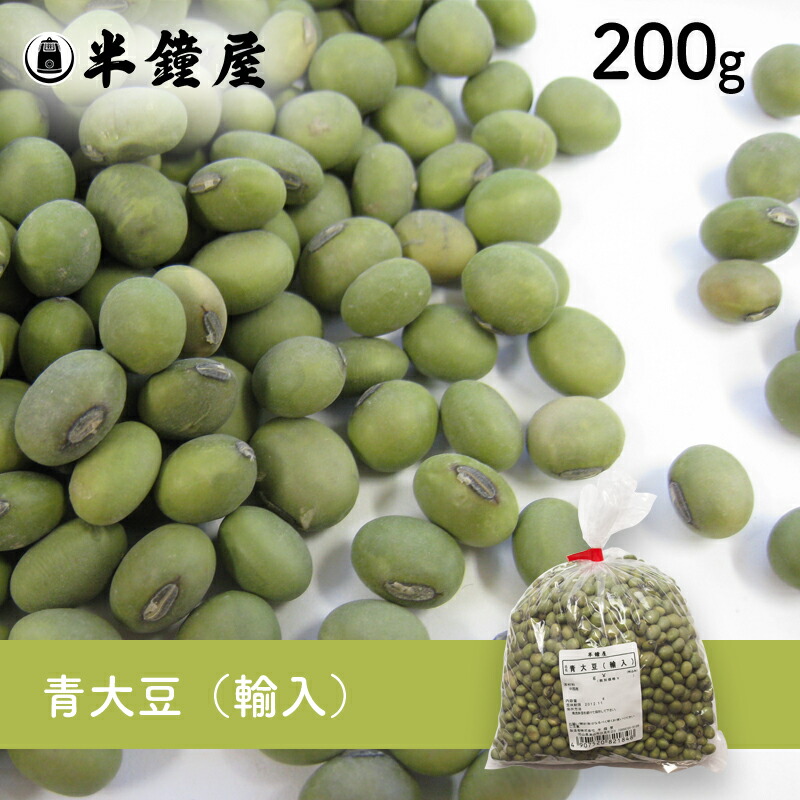 | 商品特徴 | 普通の大豆に比べ甘味が強く、皮・中身共に緑色をしています。通常きな粉や納豆などに加工される為、あまり馴染みの無い青大豆ですが、一般的な大豆よりも柔かく火の通りが早く甘味が強いのが特徴です。煮豆やサラダなどにすると美味しくお召し上がりいただけます。 |