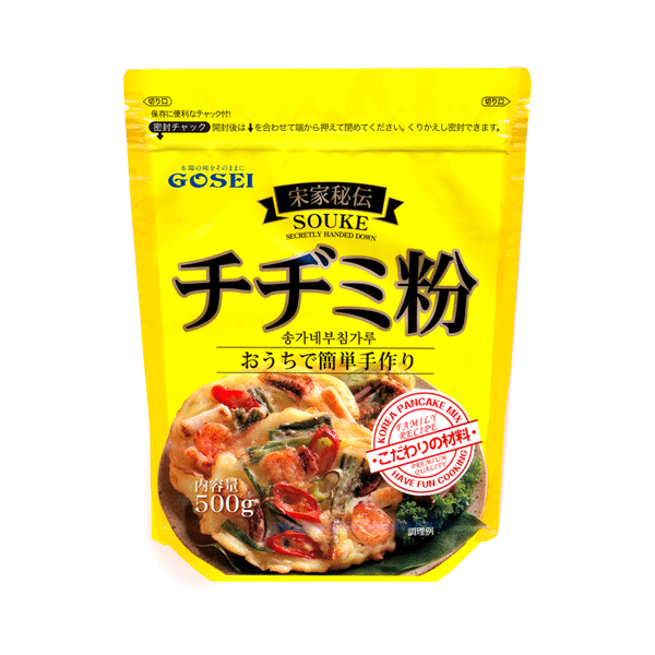 ※宋家秘伝・チヂミの素は香ばしくてたんぱくな味が特徴で、口当たりの良い逸品です。