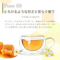 原材料名:カモミール、はちみつパウダー/甘味料(アスパルテーム、L-フェニルアラニン化合物)、香料