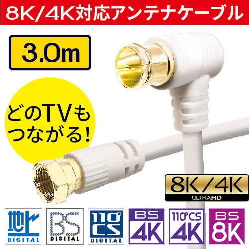 アンテナケーブル 同軸ケーブル 3m 4k対応 8K対応 テレビ 配線 BS CS 地デジ 衛星放送 アンテナ ケーブル コード TV 3.0m 300cm 種類 延長 接続 送料無料