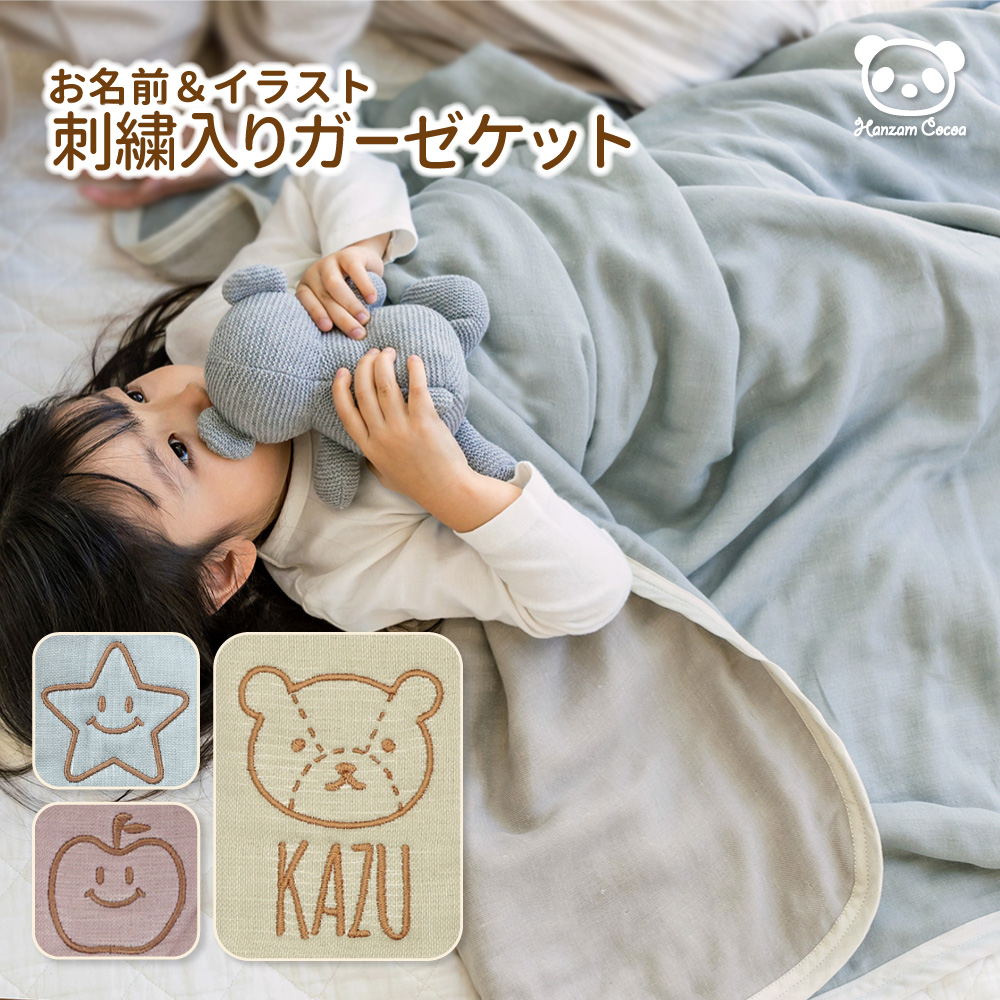 | お名前&イラスト 刺繍入りガーゼケット bicolor |