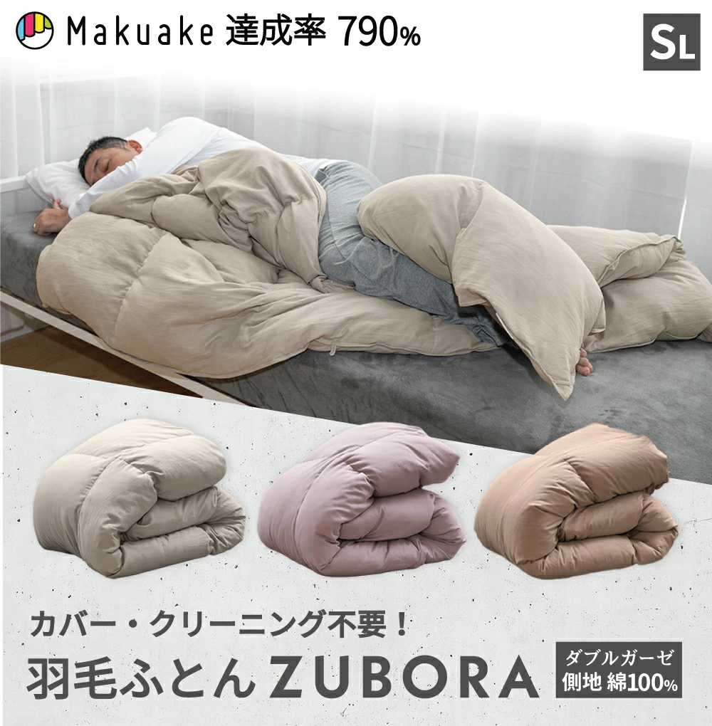 布団カバーの着脱の必要もなく、カバーと布団のよれの煩わしさも一切ありません。