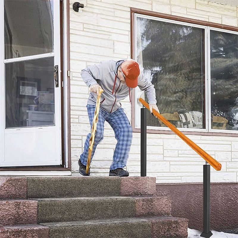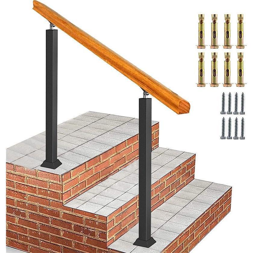 赤字覚悟!玄関手すり 屋外 玄関階段 手すり 無垢材の手摺り おしゃれ マットブラックアイアン 階段手すり 角度調整可能 高齢者用サポート 屋外手すり 屋内