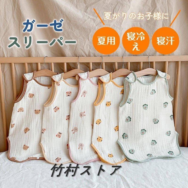 ガーゼスリーパー スリーパー 赤ちゃん 夏用 ガーゼ 2重 ガーゼ キッズ 夏用 おくるみ コットン 0歳 3か月 1歳 ロングベスト 寝袋 パジャマ 通年