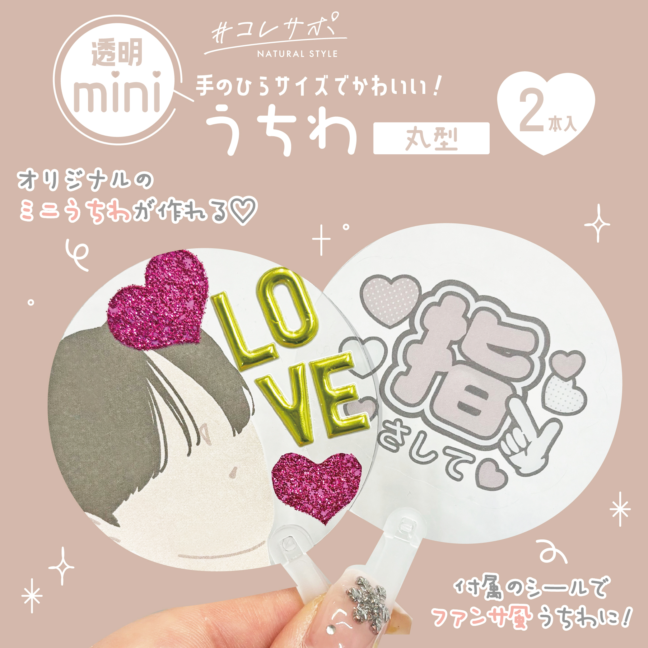 ミニうちわ 丸型 20枚(2枚入×10)文字シール付き ぬい用うちわ 透明 ミニピケット チャームうちわ 約83×58mm コレサポ OSH38