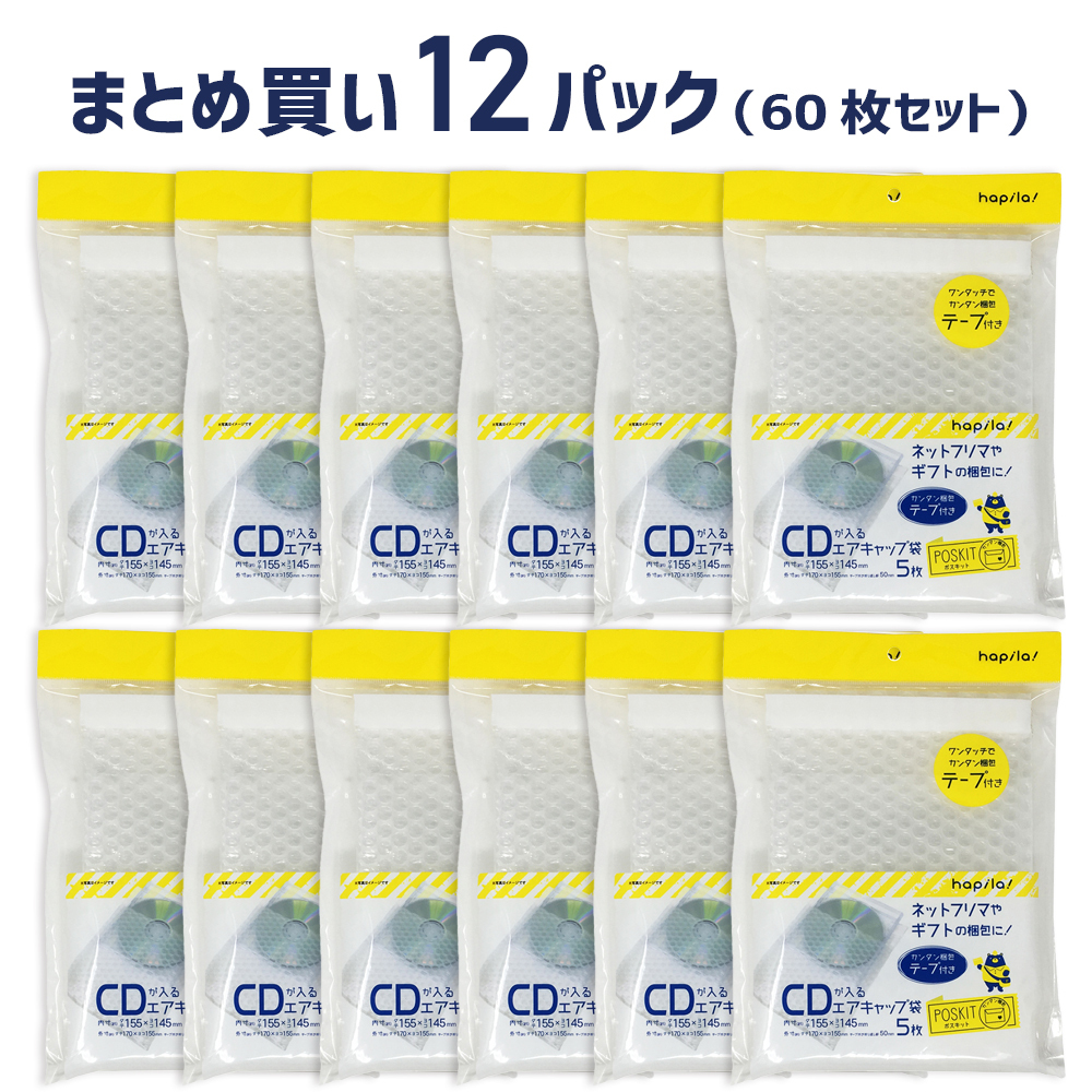 テープ付エアクッション袋 CDが入るサイズ 5枚入×12パックセット