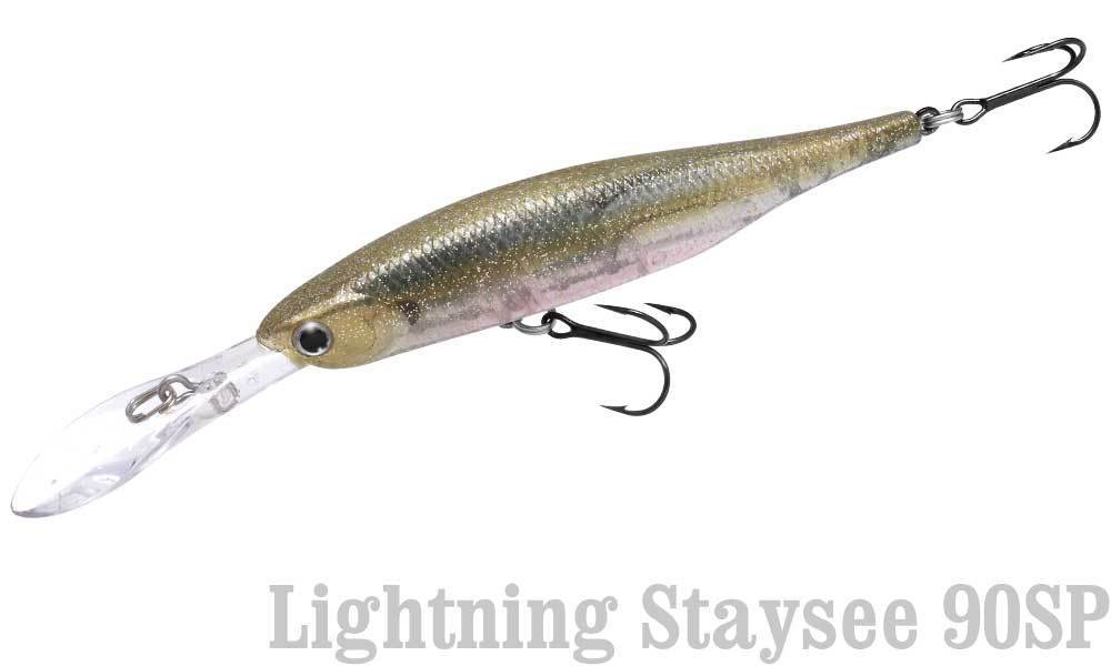 Lightning Staysee 90SP全長:90mm(3-1/2")重量:12.5g(7/16oz)深度:3mタイプ:サスペンドスポーニングシーズンのまだメスがナーバスにベッドを守っている頃、ポンピングリトリーブにてバスのもとに忍び寄り、長いポージングにてバスをイラつかせる為に作られたのがこのステイシー。ステイシーがポンピングリトリーブなどによるそのスローな釣に適しているのは、その美しいボディー形状とリップアングルから作り出されるタイトローリングなアクションにある。細やかなそのバイブレーションでミディアムシャローのバスに危機感を与えず近づき、バスの生物学的な動きに合わせて食わせに持ち込む事が出来るのはこのステイシーでしか出来ない技だ。