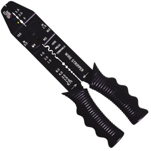 ・用途:絶縁端子の圧着(赤色/1.25mm、青色/2.0mm、黄色/5.5mm)、裸端子の圧着(1.25-2.0-5.5mm)、被膜はがし(0.75-0.9-1.25-2.0-3.5-5.5mm)、ネジの切断(M2.6-M3.0-M3.5-M4.0-M5.0/ISO)