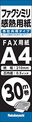 ナカバヤシ FAX・ワープロ用感熱紙 A4 0.5インチ芯 30m 42877