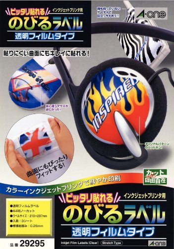 エーワン ピッタリ貼れるのびるラベル 透明 ノーカット 3枚 29295