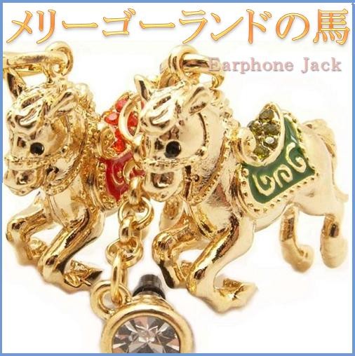 スマートフォンアクセサリー 馬 干支 ハッピーグッ イヤホンジャック スマホピアス スワロースキー phone&スマホ・タブレット メリーゴ−ランドのお馬!