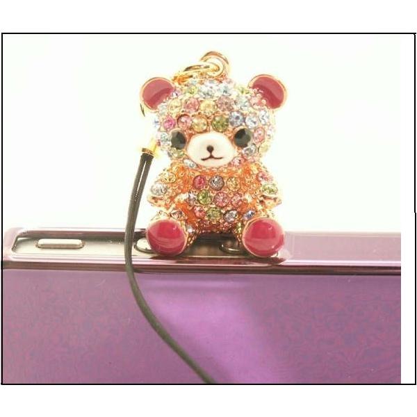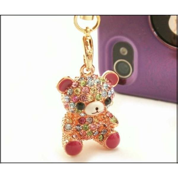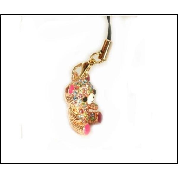スワロスキーストラップ リラクマ コグマ 熊 ハッピーグッ スマートフォン、かばんなど 携帯アクセサリー(ゴールドマルチ)